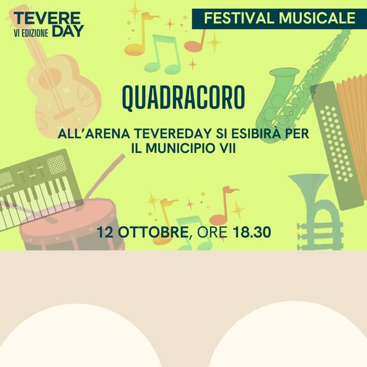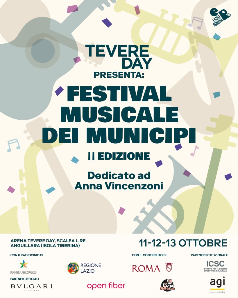 Il Tevere Day torna dal 7 al 13 ottobre 2024 offrendo un programma ricco di iniziative, tra queste “Il festival musicale dei municipi” alla sua seconda edizione. In una location suggestiva, quella del Lungo Tevere degli Anguillara, il pubblico potrà godere gratuitamente dell’esibizioni di bande, orchestre e cori provenienti dai Municipi di Roma Capitale…